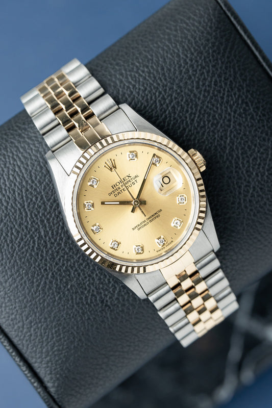 ROLEX DATEJUST 36 CHAMPAGNE DIAMOND DIAL REF: 16233 (1996)