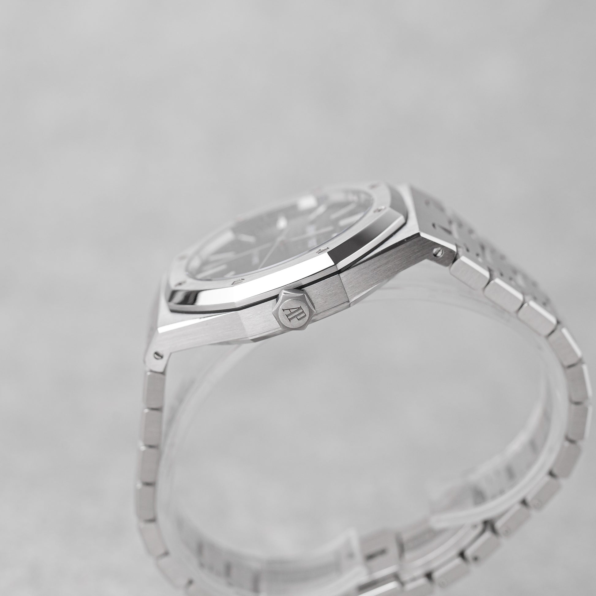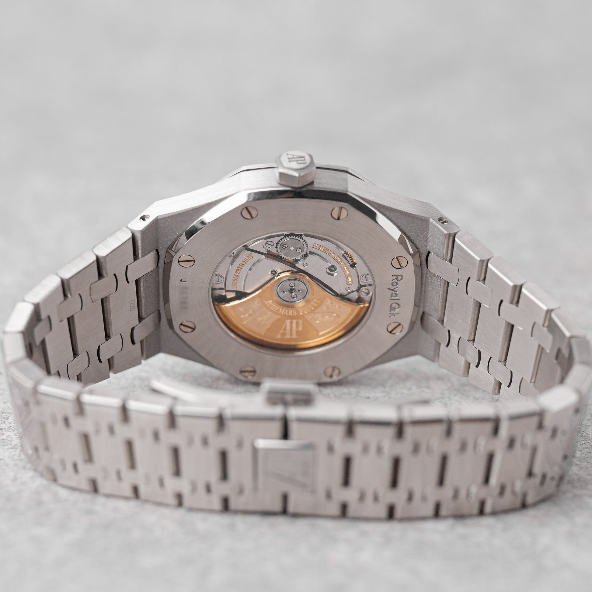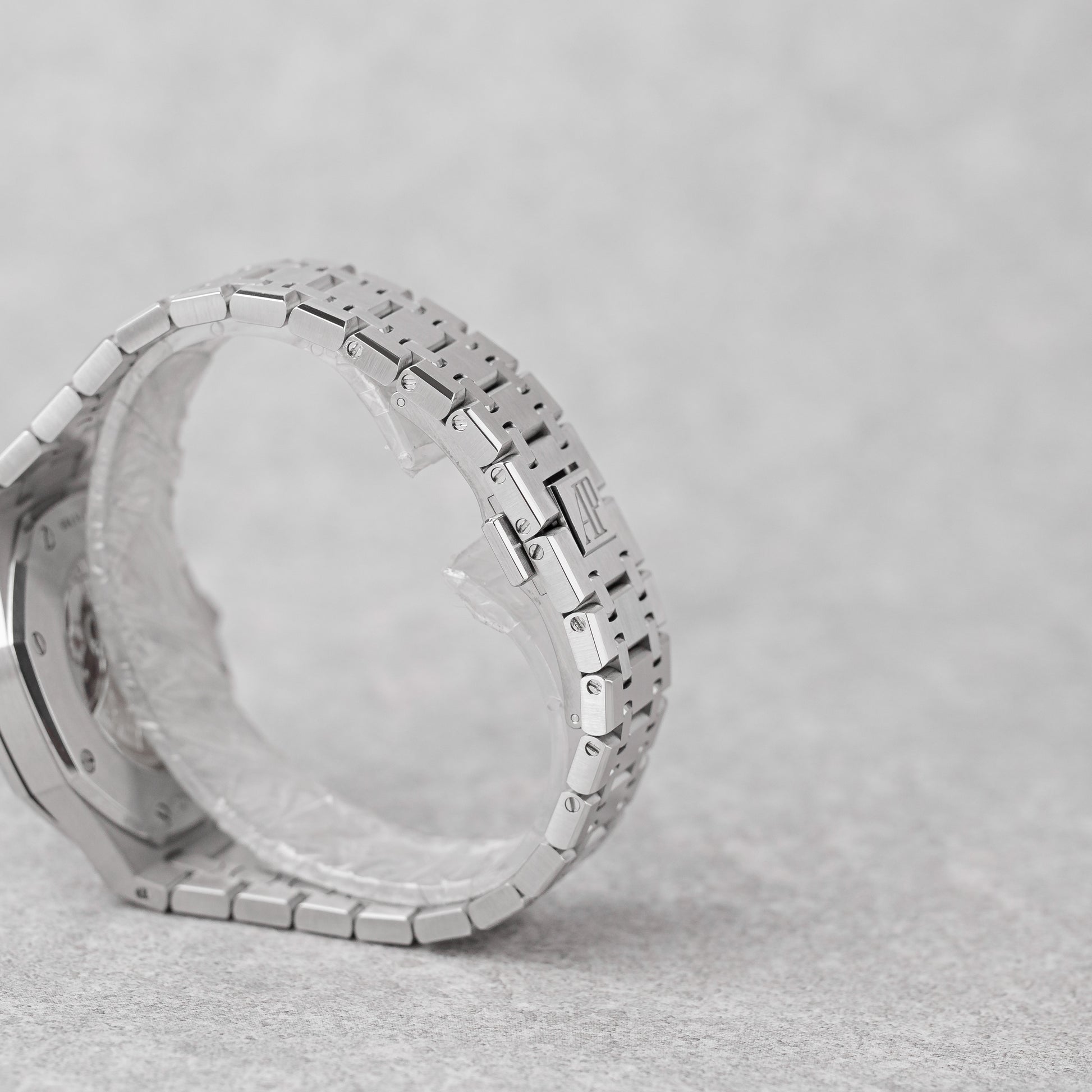 The Audemars Piguet Royal Oak 15400ST is a true icon, featuring the unmistakable Grande Tapisserie black dial and a 41mm stainless steel case. This example comes as a Full Set with full links and the original Portuguese invoice, reflecting its excellent provenance.
