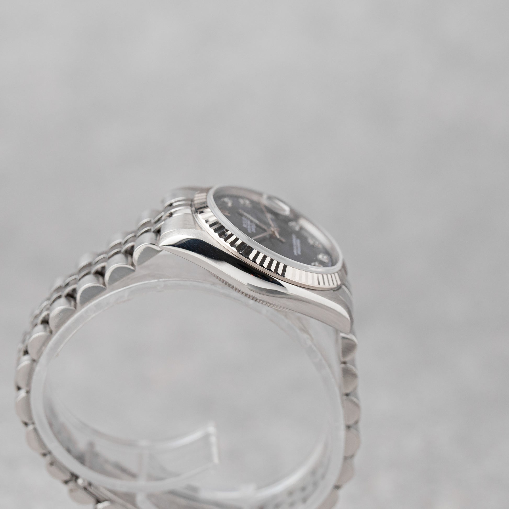The watch has undergone a complete service by our watchmaker and comes with 12 months of guarantee from us. A timeless and feminine classic with subtle sparkle and enduring Rolex elegance.