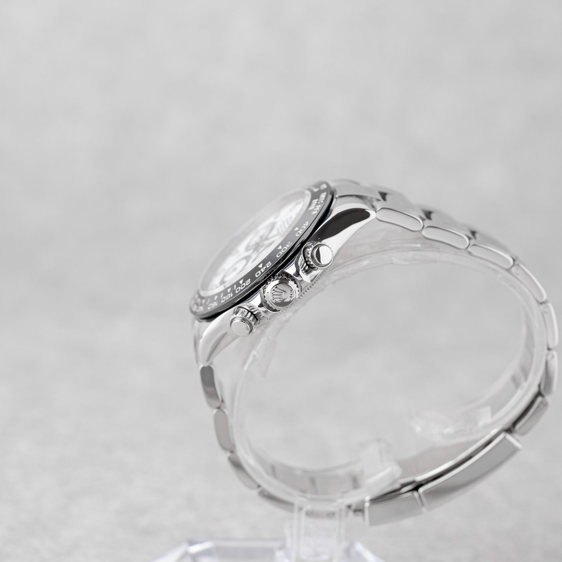 The iconic Rolex Daytona Ref: 116500LN with the sought-after white dial and black subdials ("Panda") is a true collector’s piece. This example from 09/2017 (LC17) comes with full links and is in very good condition.