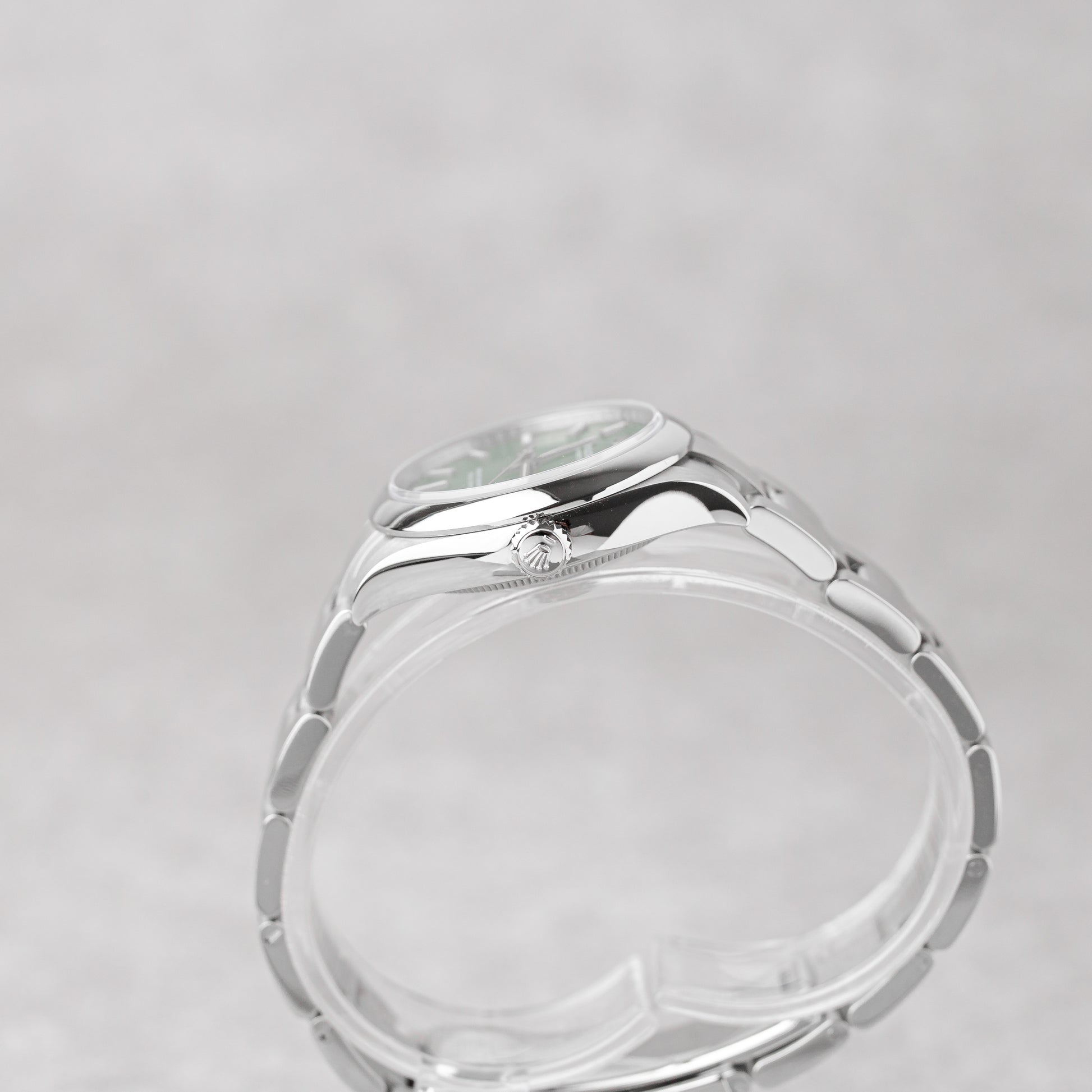 A vibrant and elegant timepiece, this Rolex Oyster Perpetual 31 features the sought-after green dial in a versatile 31mm case. Sold as a Full Set from 08/2025, it is in brand new condition and comes with 5 years of Rolex international guarantee. A timeless classic with a modern twist, perfect for daily wear or collection.