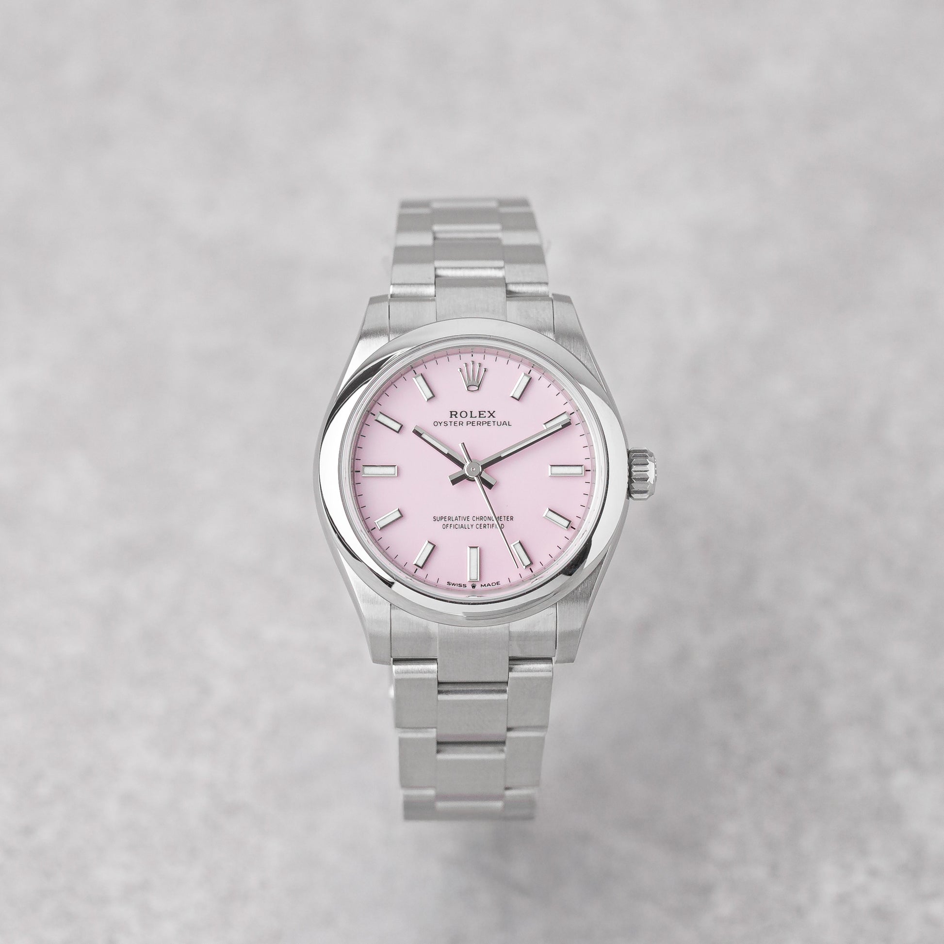 Charming and elegant, this Rolex Oyster Perpetual 31 features the playful and rare Pink Candy dial in a 31mm Oystersteel case. Sold as a Full Set from 08/2025, it is in new condition and covered by 5 years of Rolex international guarantee. A vibrant modern classic, perfect for everyday elegance or as a standout addition to any collection.