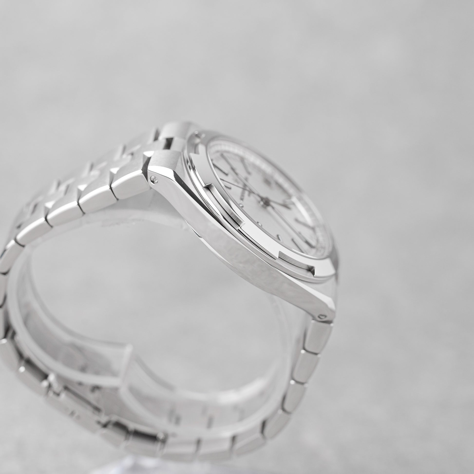 A timeless expression of elegance and versatility, this Vacheron Constantin Overseas Ref. 4500V/110A-B126 features a stunning silver dial housed in a 41mm stainless steel case. Delivered as a Full Set from 10/2018, it comes complete with all three original bracelets — steel, leather, and rubber — offering unmatched adaptability for any occasion.
