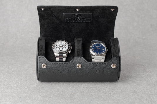 Rolo de relógio individual de couro natural preto