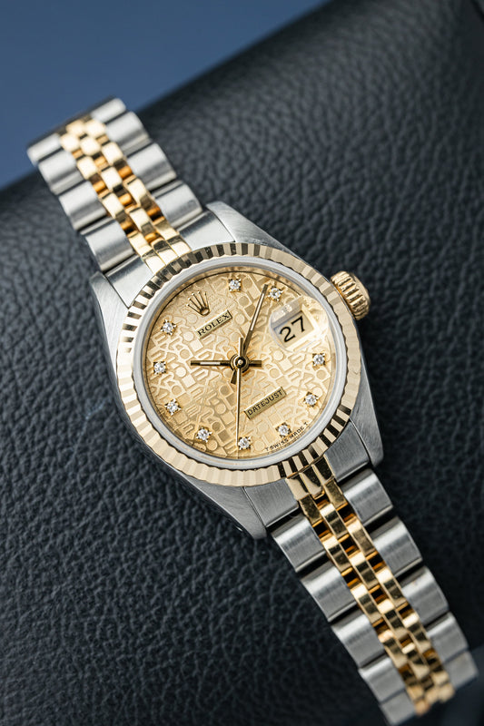 ROLEX LADY-DATEJUST 26 CHAMPAGNE MOTIF DIAL REF: 69173
