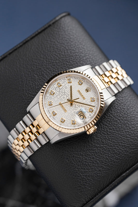 ROLEX DATEJUST 36 SILVER DIAL DIAMONDS REF: 16233 (1997)
