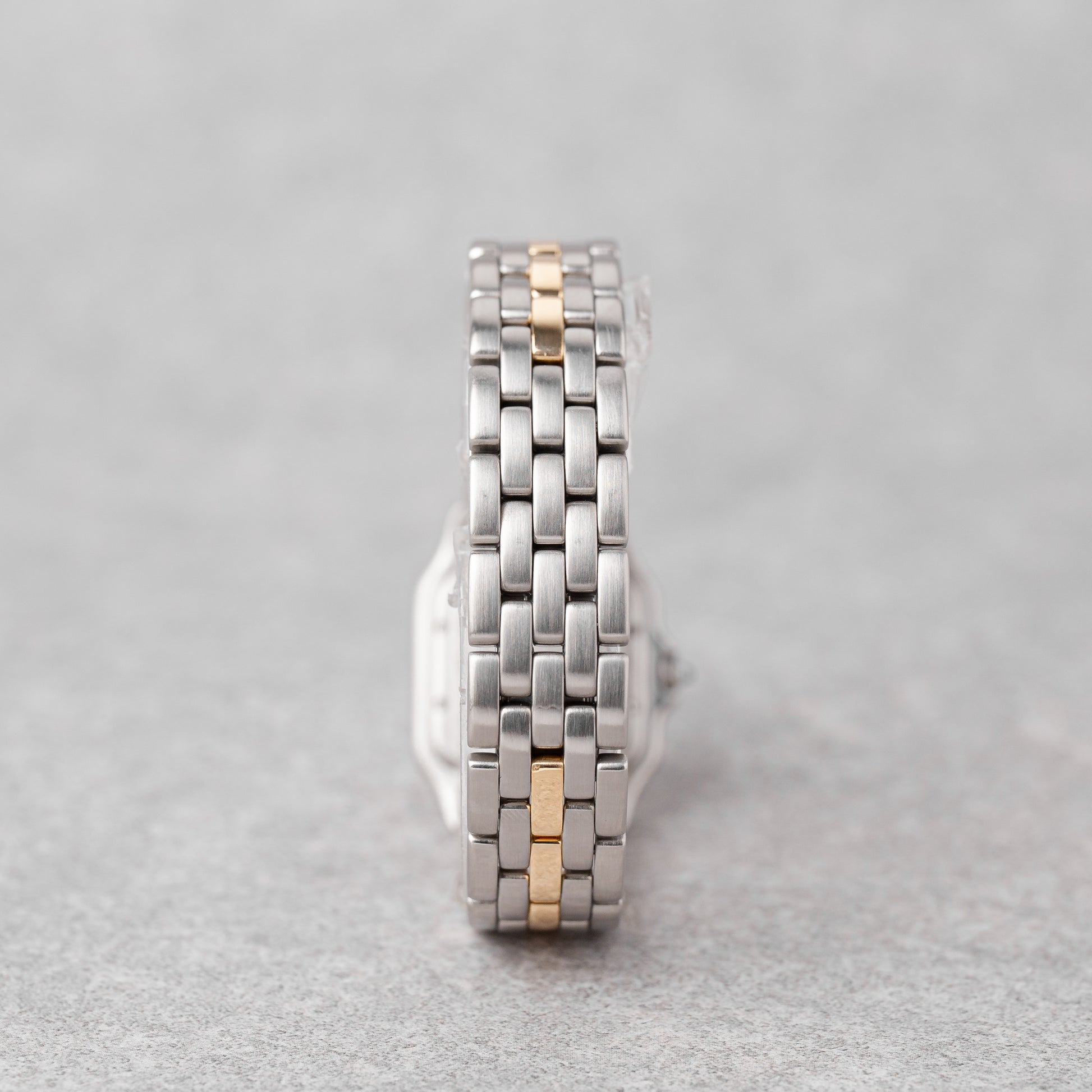Um ícone de elegância, este Cartier Panthère Medium 27mm apresenta um estojo e bracelete bicolor em aço e ouro amarelo com uma única linha de ouro , oferecendo sofisticação atemporal. Vendido como um Conjunto Completo com papéis em branco, está em muito bom estado, ajusta-se a pulsos até 18.5cm, e vem com 12 meses de garantia da nossa parte. Um Cartier clássico e refinado que nunca sai de moda.