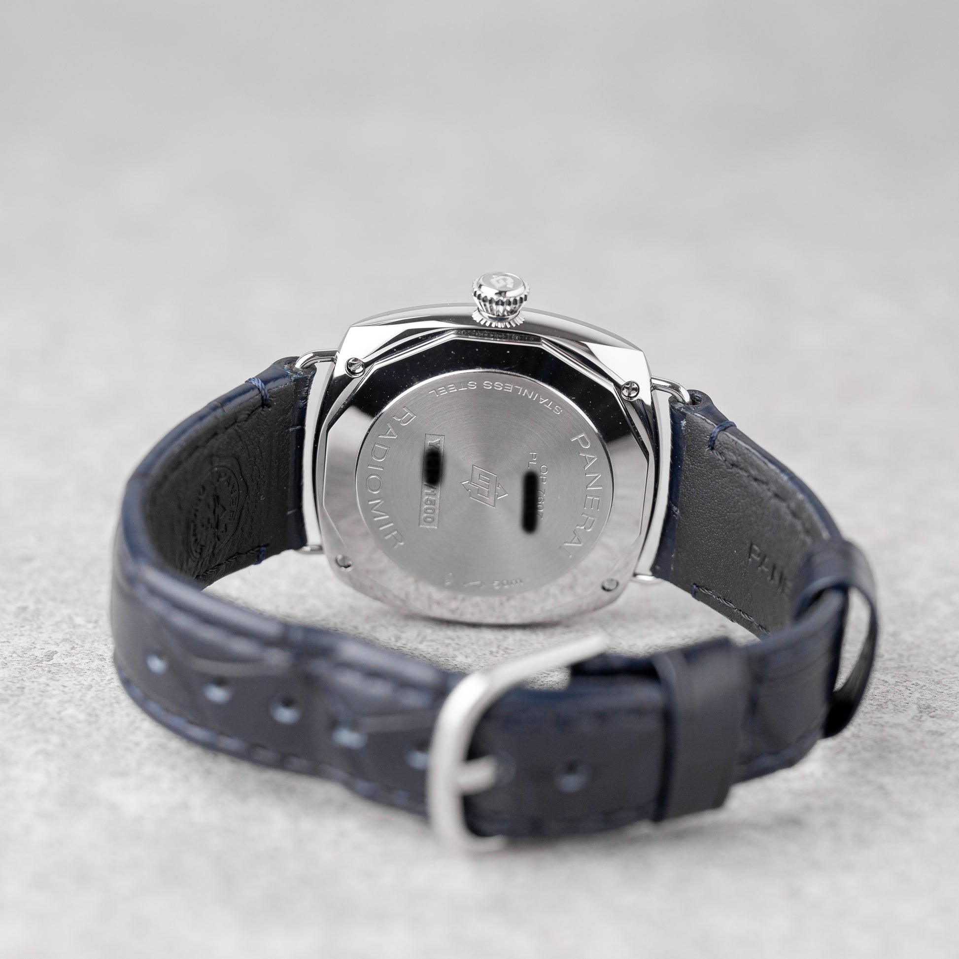 Este elegante Panerai Radiomir Quaranta apresenta a atemporal caixa em almofada Radiomir num versátil tamanho de 40mm, combinando charme vintage com proporções modernas. Entregue como um Conjunto Completo de 11/2023, está em condição como nova e coberto pela garantia internacional Panerai de 8 anos. Um Panerai refinado que oferece tanto herança como usabilidade.