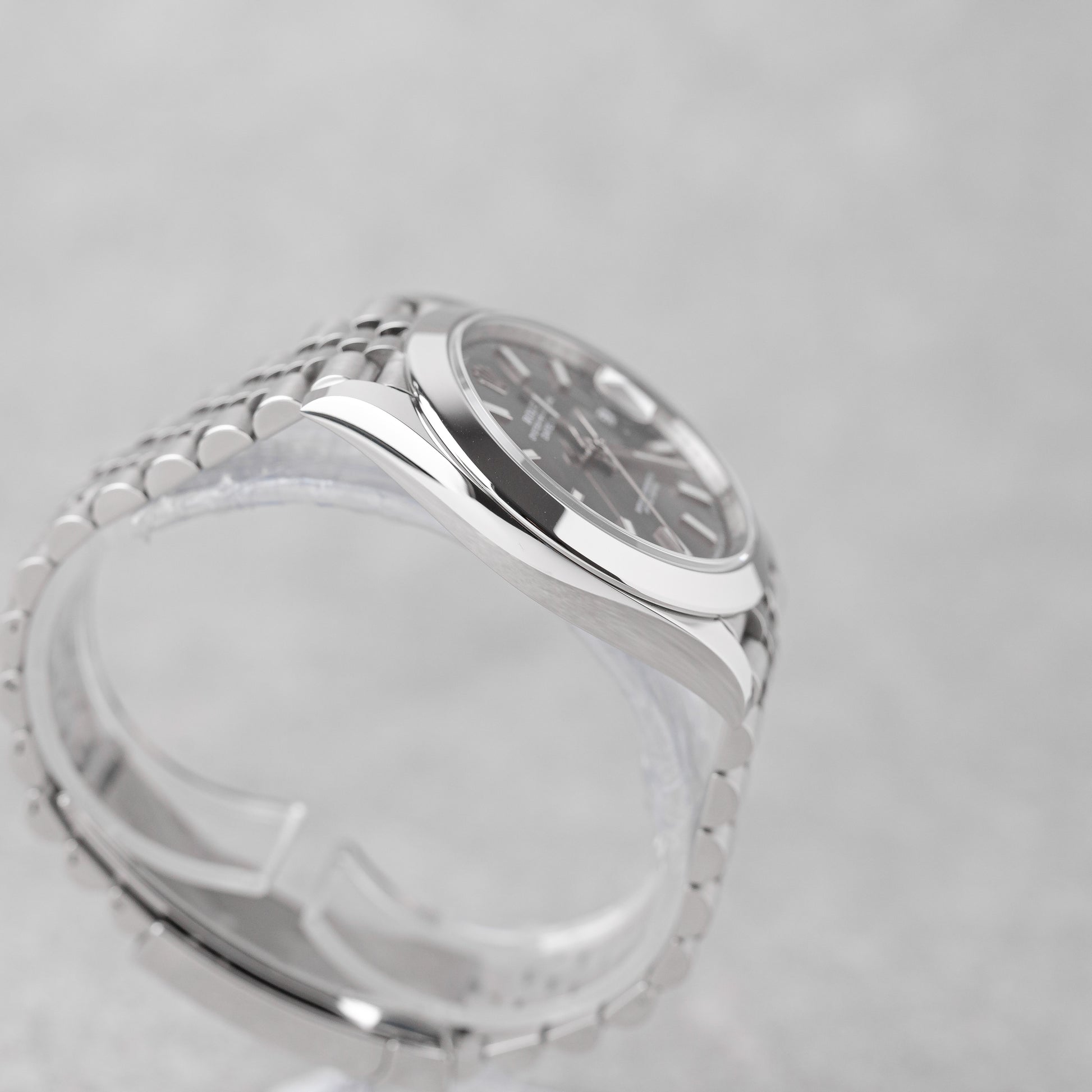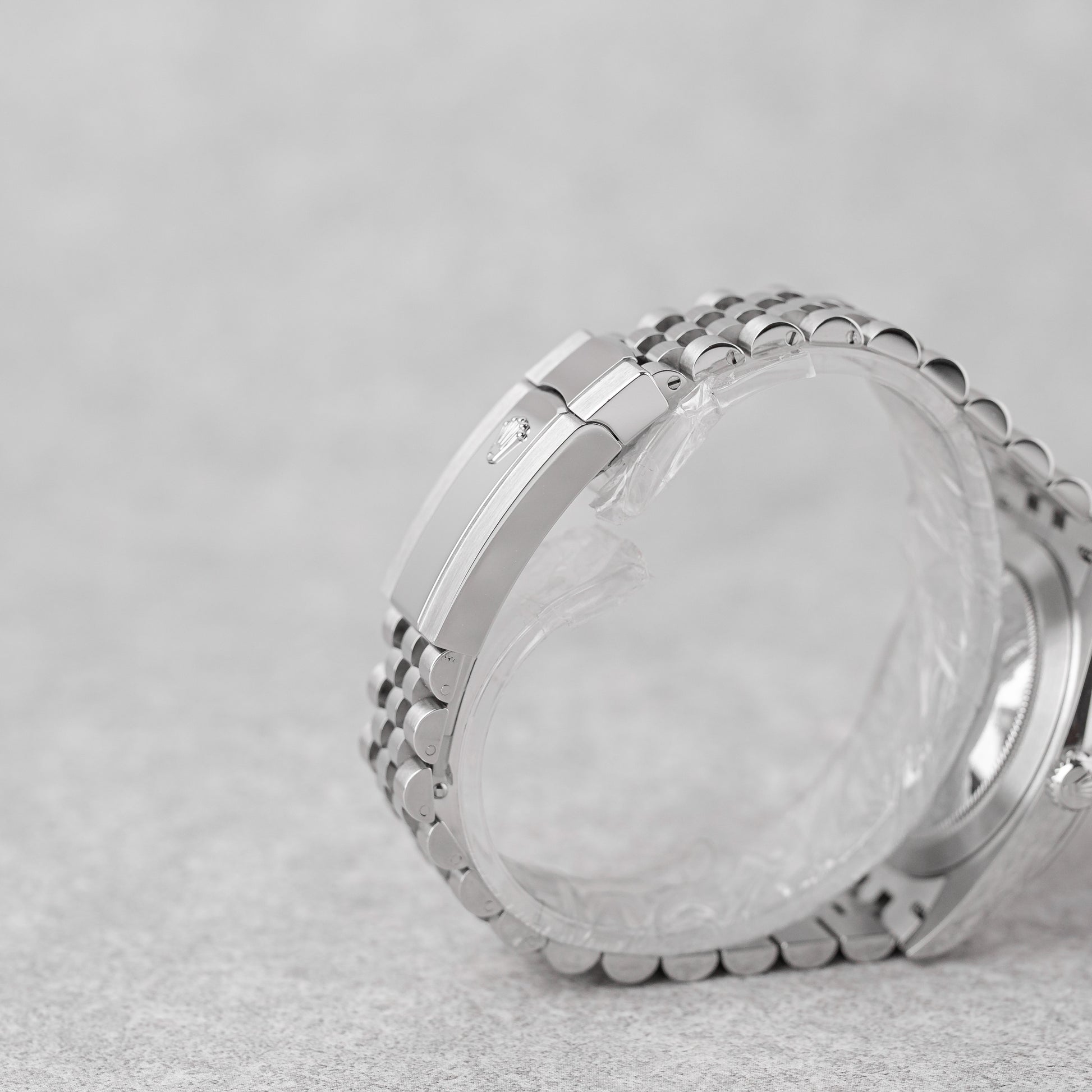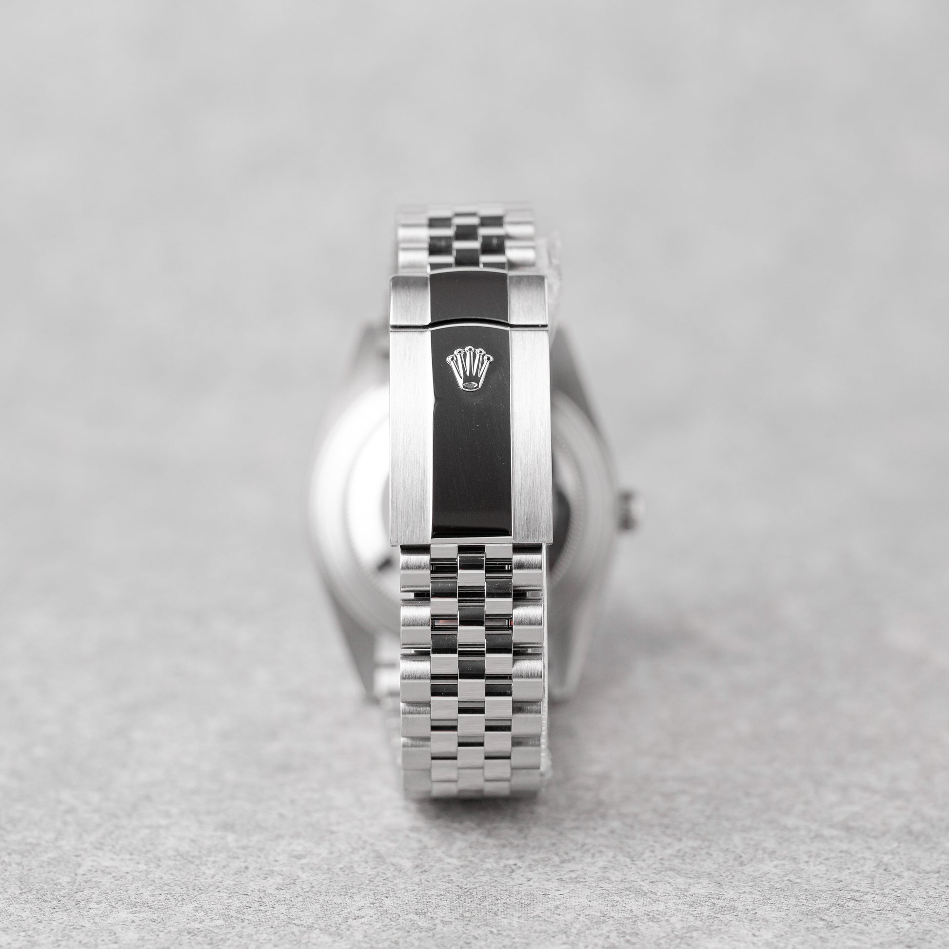 Este elegante Rolex Datejust 41 apresenta um refinado mostrador de ródio emparelhado com a icónica pulseira Jubilee , misturando sofisticação moderna com um design intemporal.