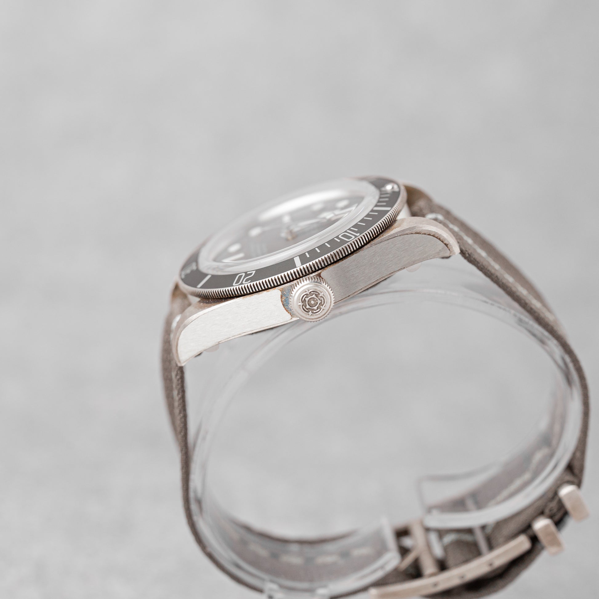 Uma abordagem única e sofisticada do Black Bay 58, esta versão apresenta um caixa de prata esterlina 925 com um mostrador e bezel taupe , dando-lhe um tom quente e distinto. Entregue como um Conjunto Completo de 11/2021 , ainda mantém os seus autocolantes originais e está em condição como nova , apresentando o novo cartão de garantia Tudor .