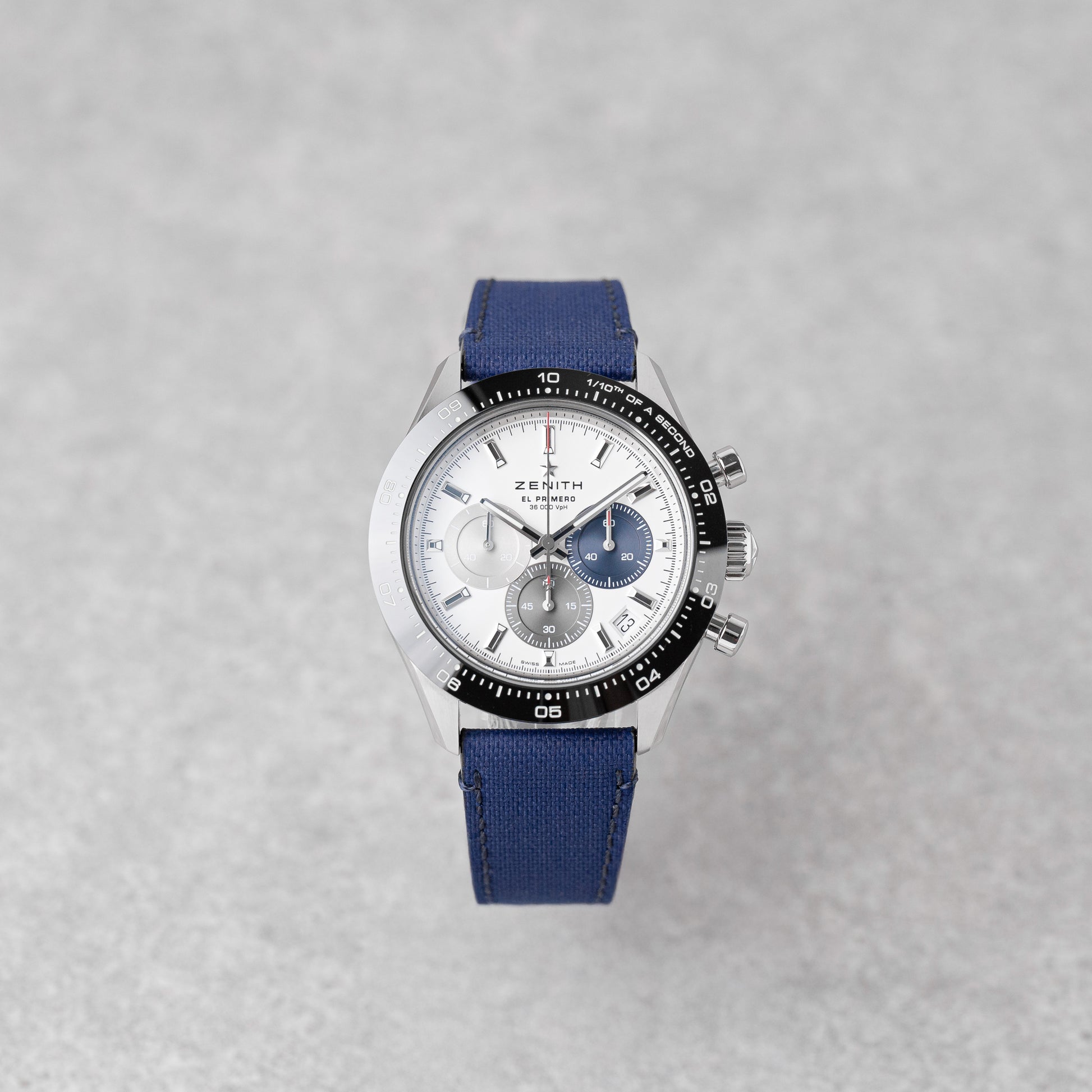 O Zenith Chronomaster Sport apresenta o lendário movimento cronógrafo de alta frequência El Primero com precisão de 1/10 de segundo, alojado em uma caixa de aço inoxidável de 41mm com um mostrador branco e submostradores de três cores característicos.